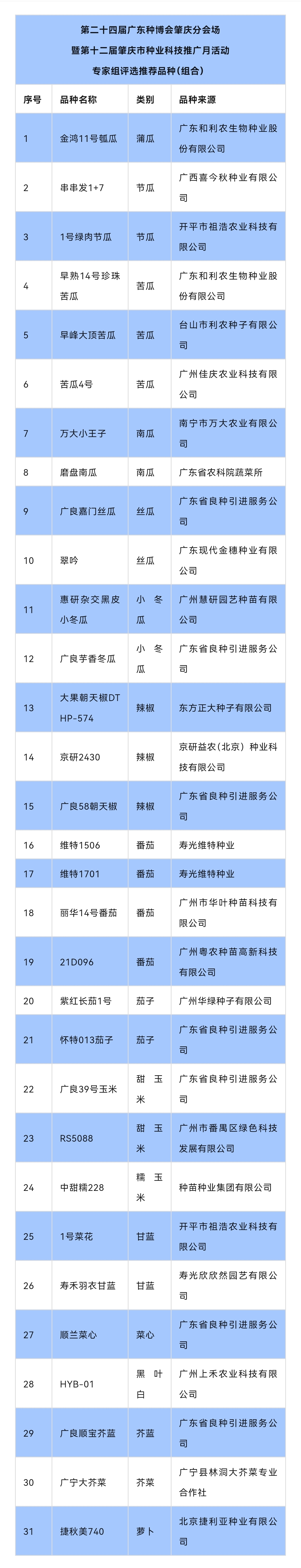31个品种获推介